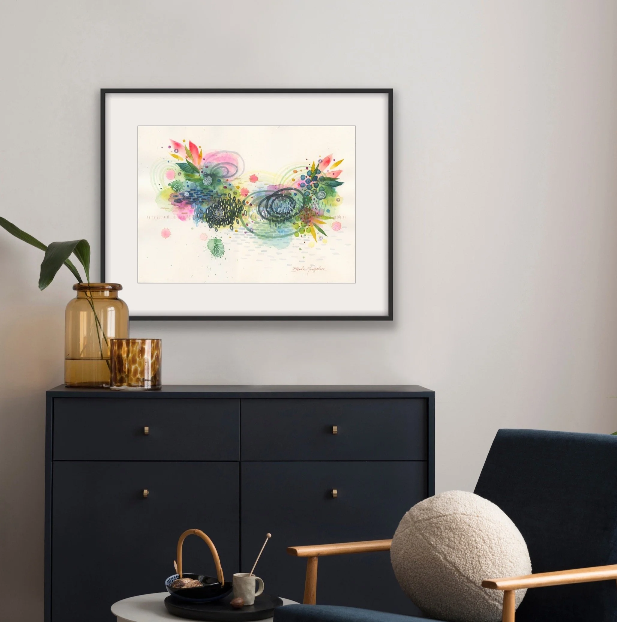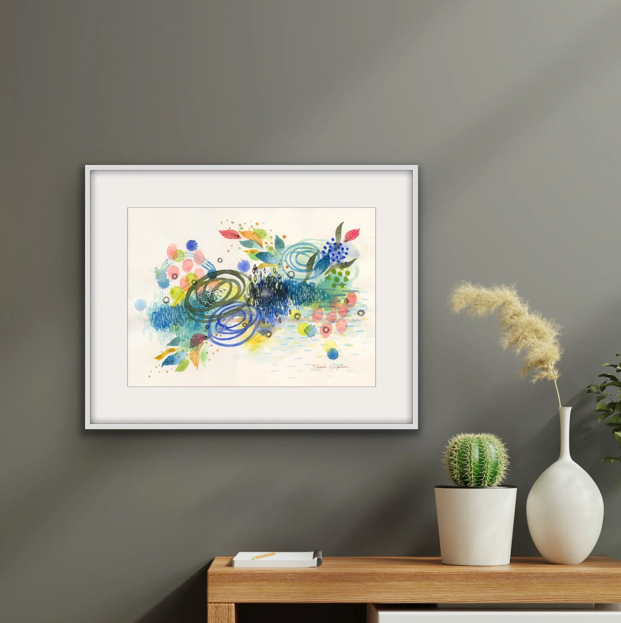 Each painting comes with a 16inch x 20inch mat for easy framing